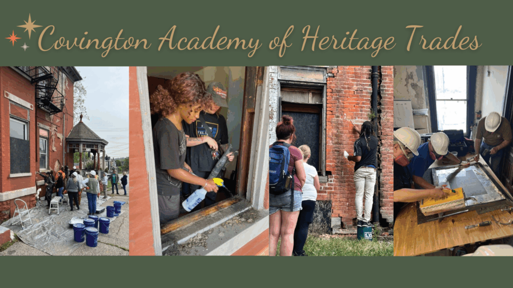 As anyone who owns a historic building knows, these buildings are works of craftsmanship and as technology and construction have changed, unfortunately, the detailed craftsmanship and knowledge of traditional trades has declined in the construction industry. This has often made it difficult to find knowledgeable craftsmen to work on our homes. Seeing this issue, the City of Covington has partnered with the Enzweiler Building Institute to create the Covington Academy of Heritage Trades.