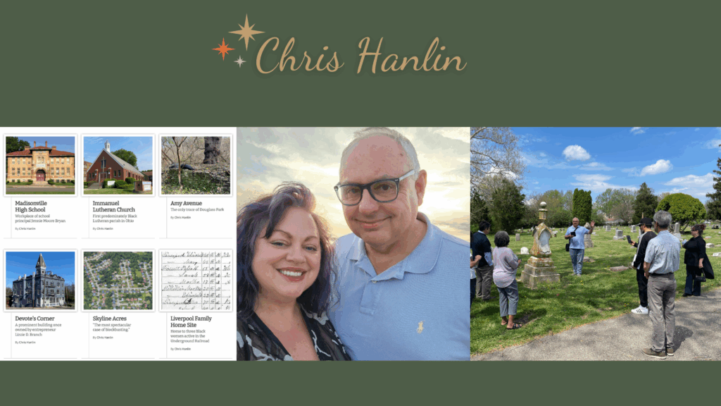 Chris Hanlin, a retired architect, has been a dynamic volunteer of our History of Black Sites and Underrepresented Communities Committee since its inception in 2022. He has come to this committee with a wealth of knowledge and passion to tell the stories of people of color, especially those associated with Madisonville. Chris has been instrumental in our Cincinnati Sites and Stories app and website. For those that don’t know Cincinnati Sites and Stories is a free application that connects stories to place, and we are focusing this site to tell the stories that have not traditionally been told with a concentration on black sites and most recently
