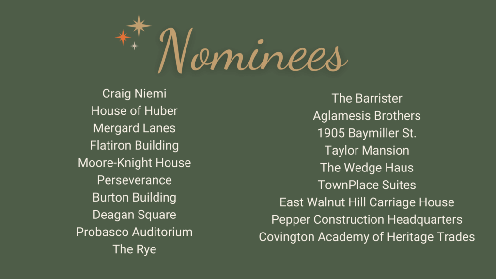 Chris has been a dedicated member of Cincinnati Preservation coming to our events and supporting our mission. From a cleanup we supported at Union Baptist Cemetery, to our inaugural Preservation Month bike ride, Chris has shown over and over his support of spreading the word and community of historic preservation throughout the city.