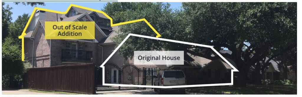 An example of the type of out of scale development a NCD would prevent. Photo courtesy of City of Plano, Tx.