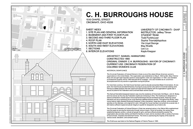 ⇐ HABS measured drawing of the CH Burroughs House at 1010 Chapel Street in Cincinnati.