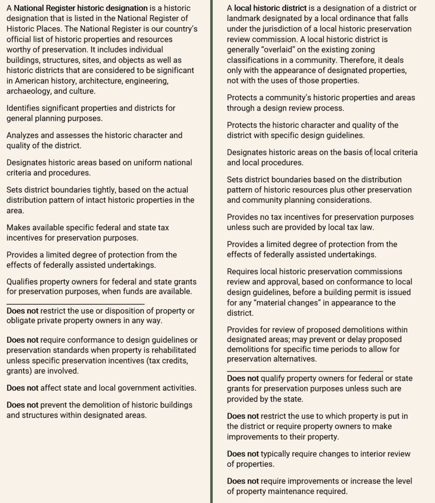 - Protect the character of the district and when next to a local historic district provide a buffer to non-protected areas to create a more cohesive context.