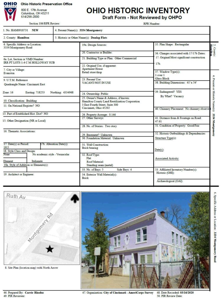⇐ An example of an OHI (Ohio History Inventory) form. These individual forms are filled out for each property within a survey area.